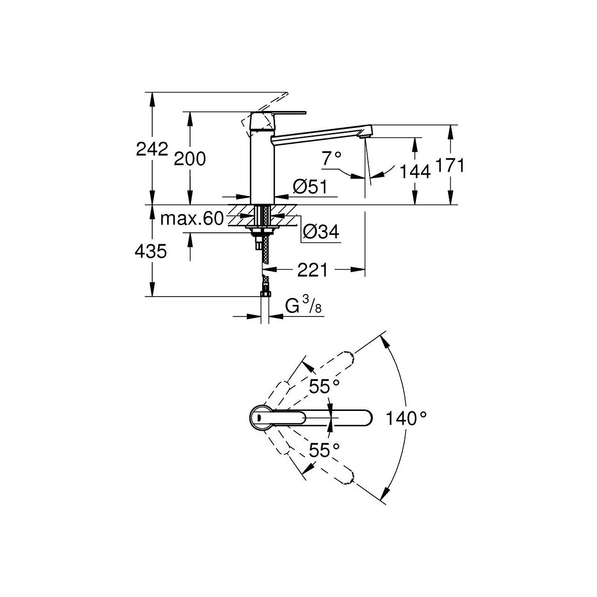 - schwenkbarer Auslauf mit einem Schwenkwinkel von 140°