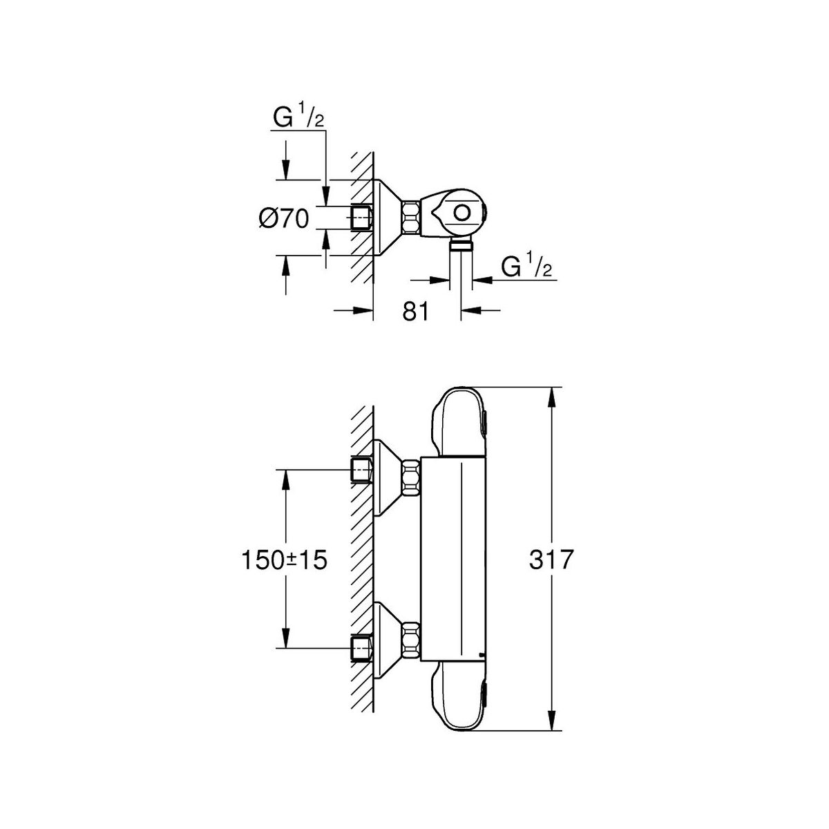 Grohe Grohtherm 1000 Duschbatterie Wandmontage mit Thermostat StarLight Chrome 34550000
