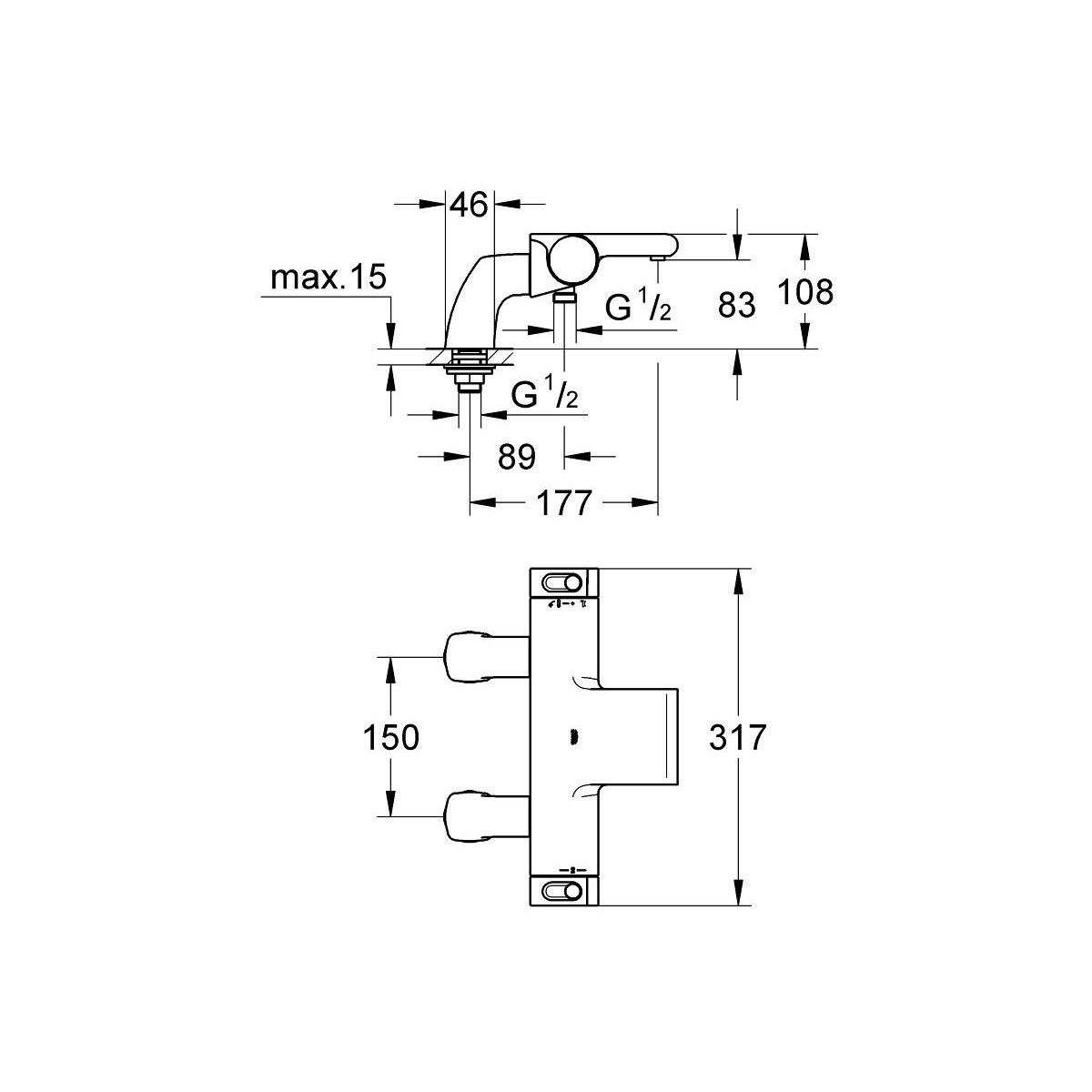 Grohe Grohtherm Badewannen- und Duscharmatur awannenmontiert mit Thermostat StarLight Chrome 34176001