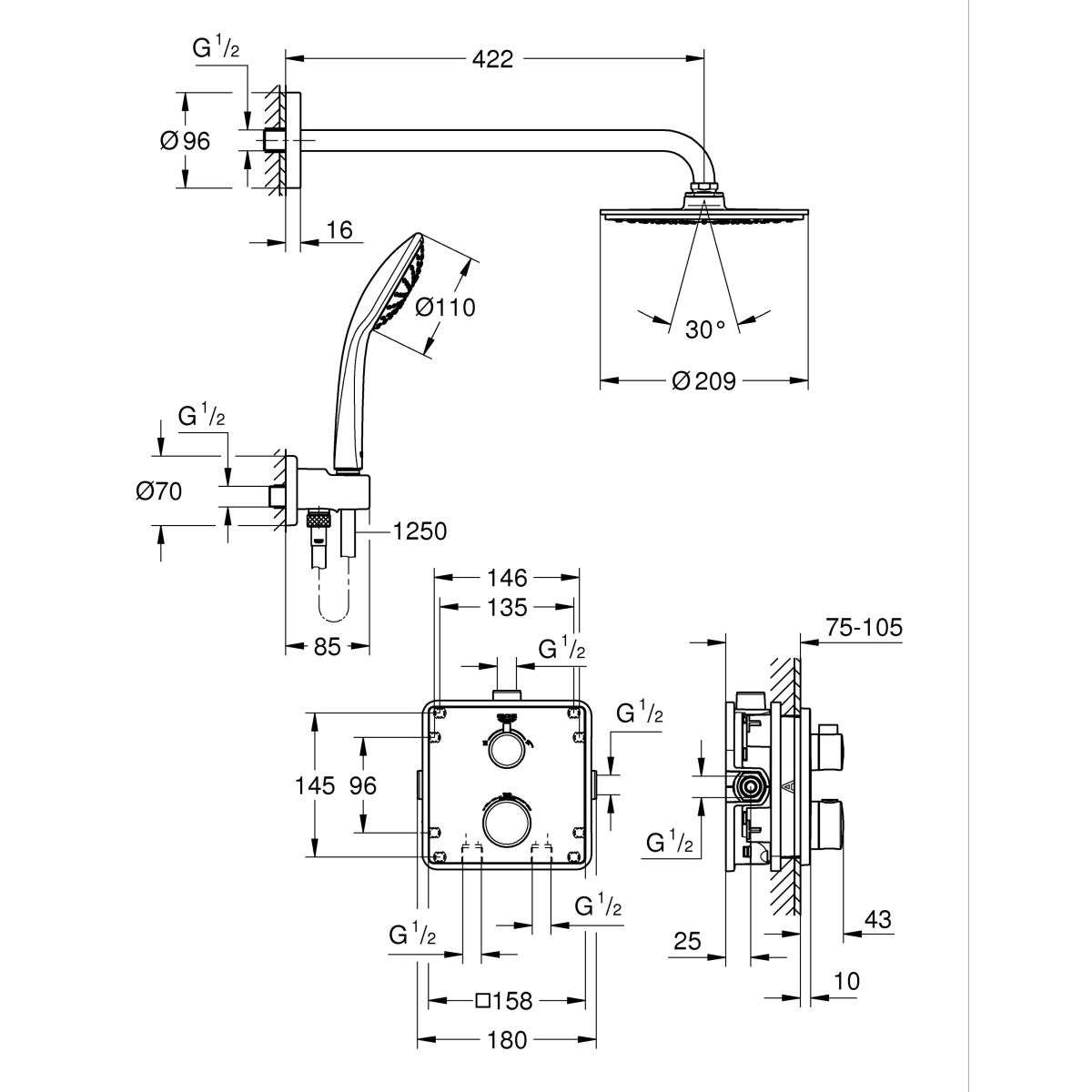 Grohe Grohtherm Duschset Unterputz mit Thermostat mit Regenbrause StarLight Chrom 34734000