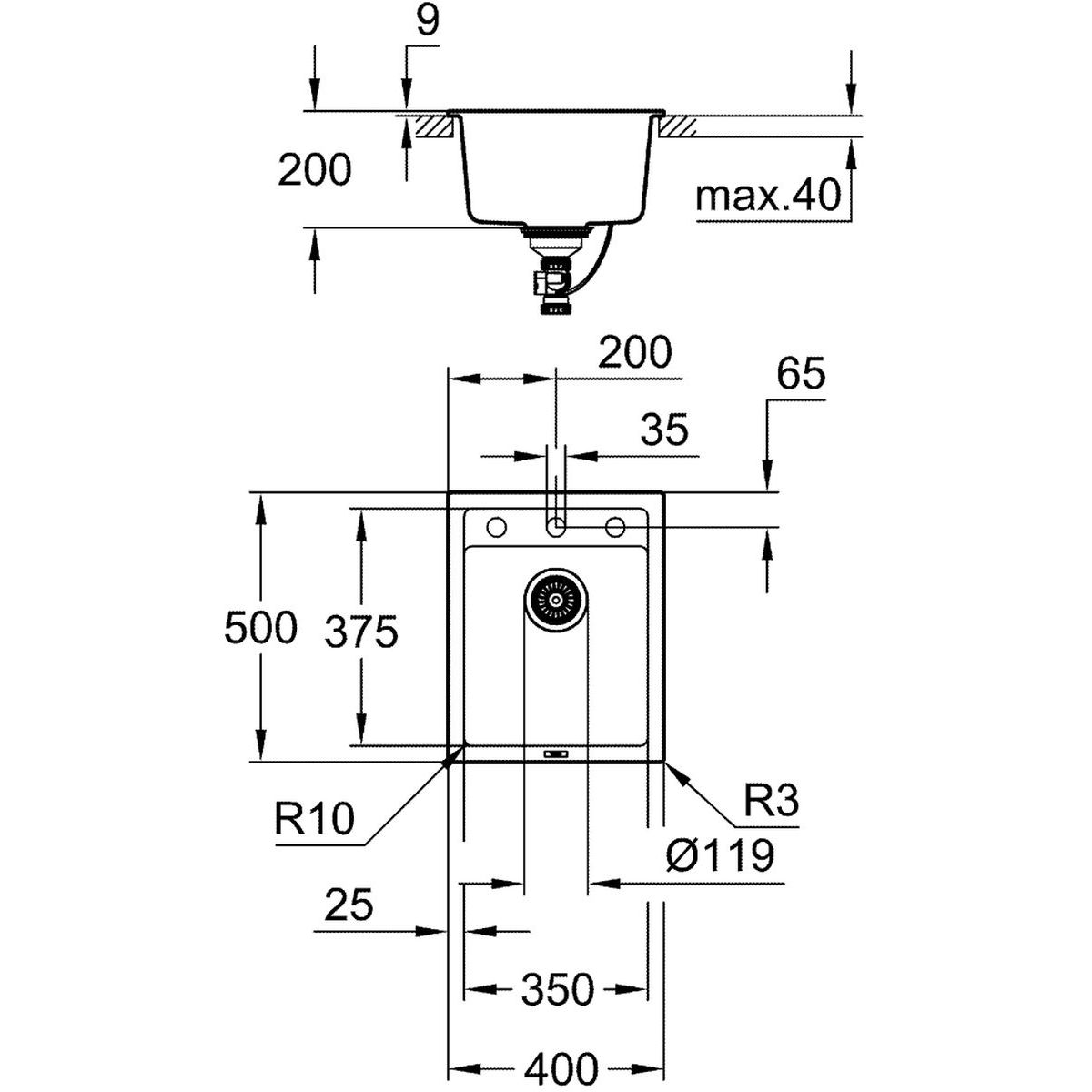 - Im Lieferumfang enthalten: automatischer Ablauf mit Siphon, Abfallsieb, Montageset