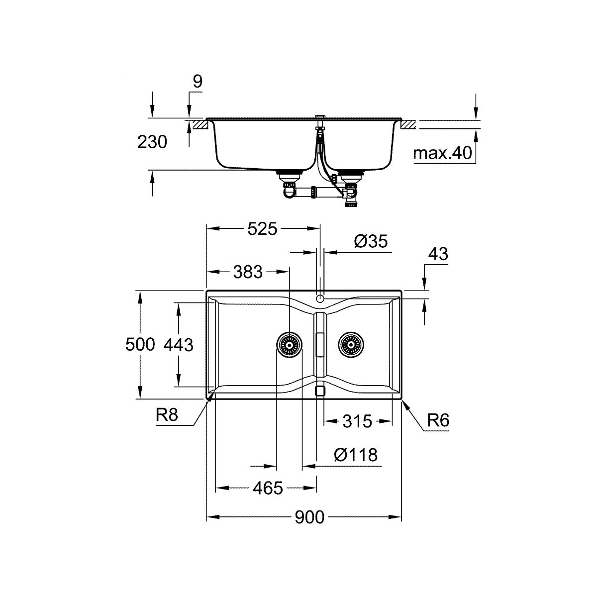 - Im Lieferumfang enthalten: automatischer Ablauf mit Siphon, Abfallsieb, Montageset