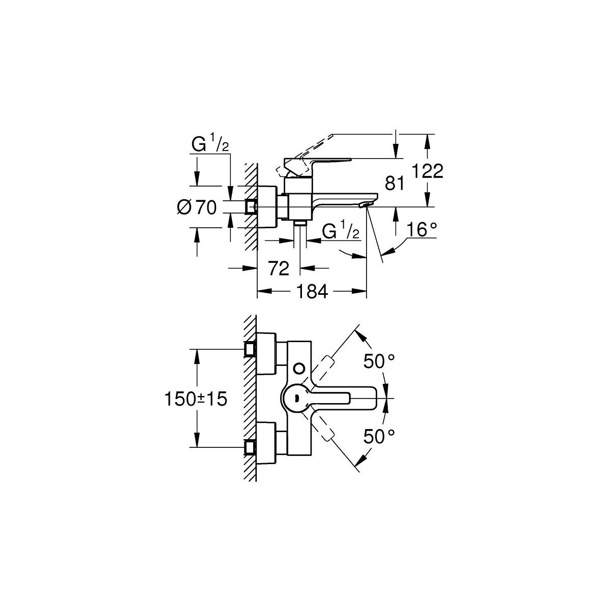 Grohe Lineare Badewannen- und Duscharmatur Wandmontage StarLight Chrome 33849001