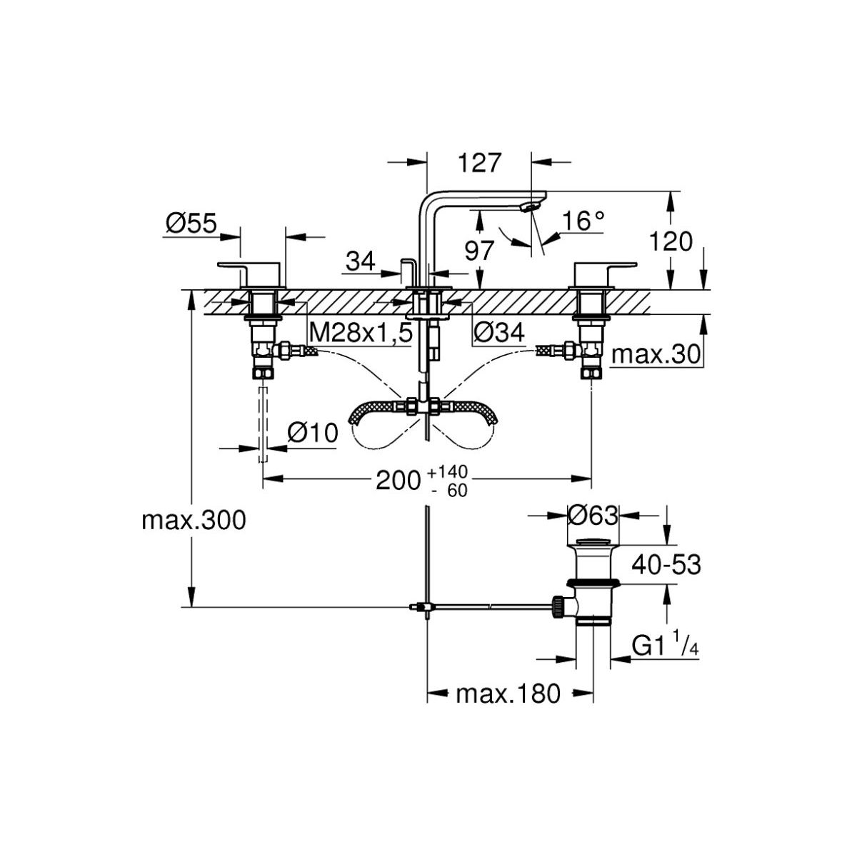 Grohe Lineare Waschtischarmatur Stehend StarLight Chrome 20304001