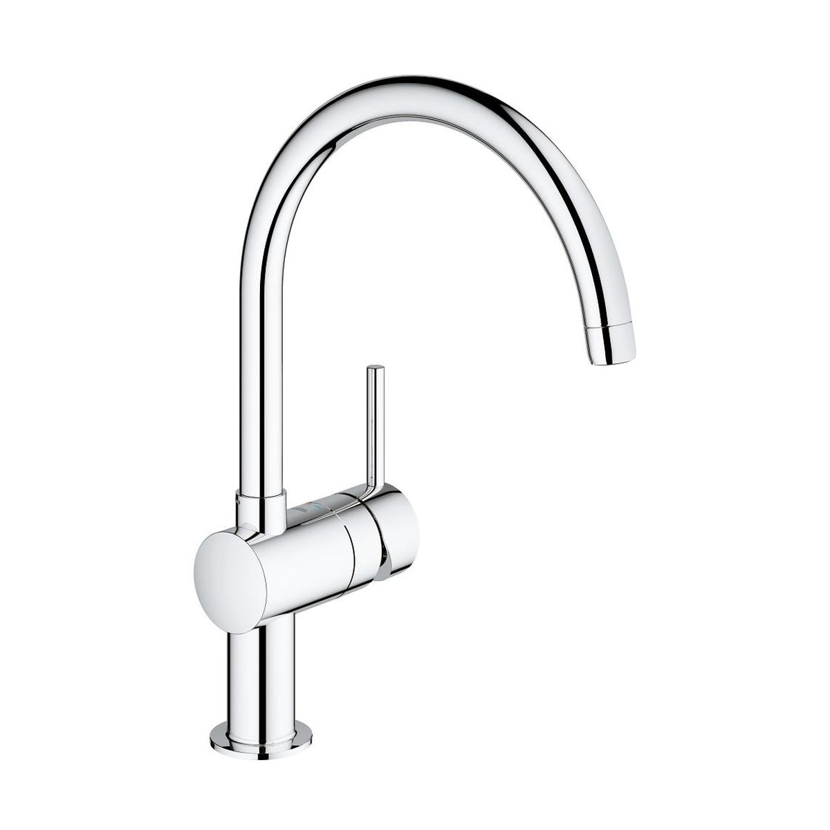 Sind Sie auf der Suche nach einer hochwertigen Küchenarmatur, die gleichzeitig durch ihr elegantes Design besticht? Dann werden Sie die Armatur Grohe Minta lieben. Ihre stilvolle C-Form begeistert auf den ersten Blick und wird durch die StarLight®-Verchromung, die im Galvanisierungsverfahren erzielt wird, zusätzlich unterstrichen. Sie sorgt für einen lang anhaltenden Glanz der Oberfläche und garantiert gleichzeitig eine bis zu 10-mal höhere Kratz- und Mattigkeitsbeständigkeit als Beschichtungen anderer Hersteller. Dank dieser Beschichtung ist die Armatur auch sehr leicht zu reinigen – ein Wisch mit einem feuchten Tuch genügt, damit sie wieder wie neu glänzt! Eine ähnliche Langlebigkeit weist auch der keramische SilkMove®-Kopf auf, der für die reibungslose Bedienung des Hebels verantwortlich ist. Dank ihm können Sie die Temperatur und den Wasserdruck auch nach vielen Jahren intensiver Nutzung mühelos einstellen. Um Ihre täglichen Arbeiten in der Küche noch weiter zu vereinfachen, verfügt die Armatur über einen in drei Bereichen einstellbaren Drehwinkel von 0°/ 150°/360°. So können Sie die Armatur perfekt an Ihre Bedürfnisse anpassen und die Funktionalität des hohen Auslaufs in vollen Zügen genießen. Das Waschen von Gemüse und Obst sowie das Befüllen großer Töpfe mit Wasser war noch nie so einfach!