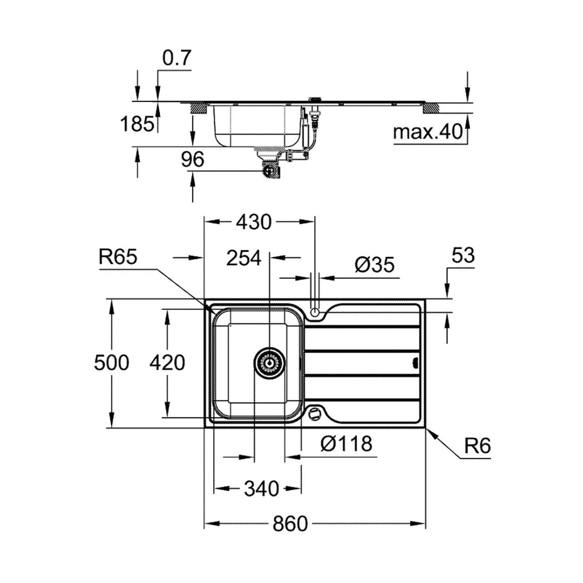 - Spülbecken K500 aus Stahl mit Abtropffläche (31 571 SD1) zum Einbau in die Arbeitsplatte