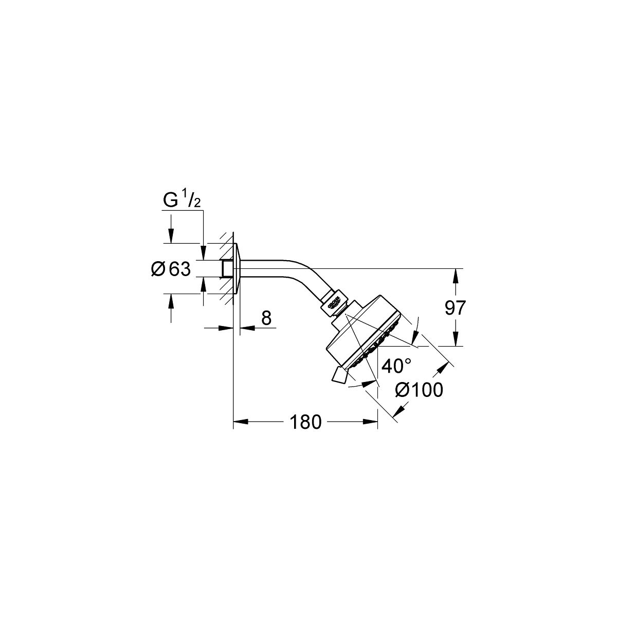 - 3 Strahlarten: Grohe Rain O2, Rain, Massage