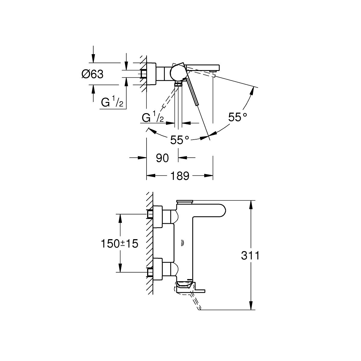 Grohe Plus Badewannen- und Duscharmatur Wandmontage StarLight Chrome 33553003