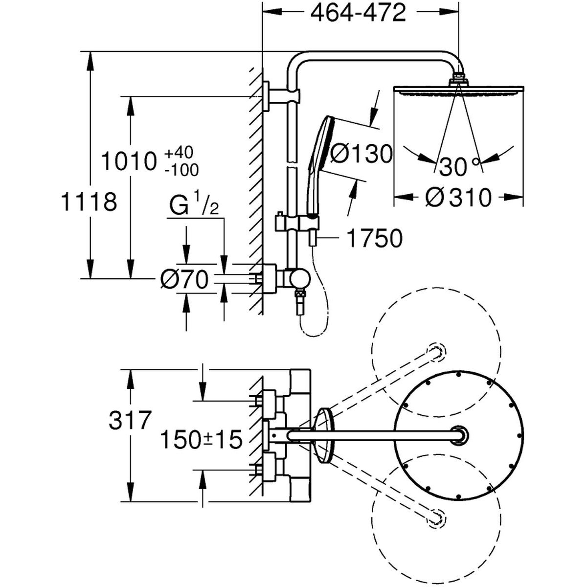 Grohe Rainshower Duschset Wandmontage mit Thermostat mit Regenbrause StarLight Chrom 27968001