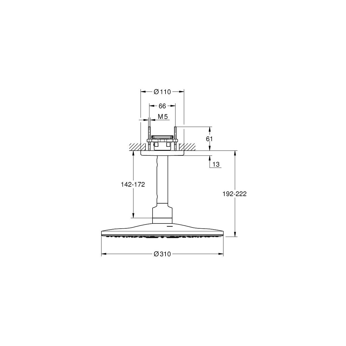 Grohe Rainshower Kopfbrause mit Arm 31x31 cm rund stahl 26477DC0