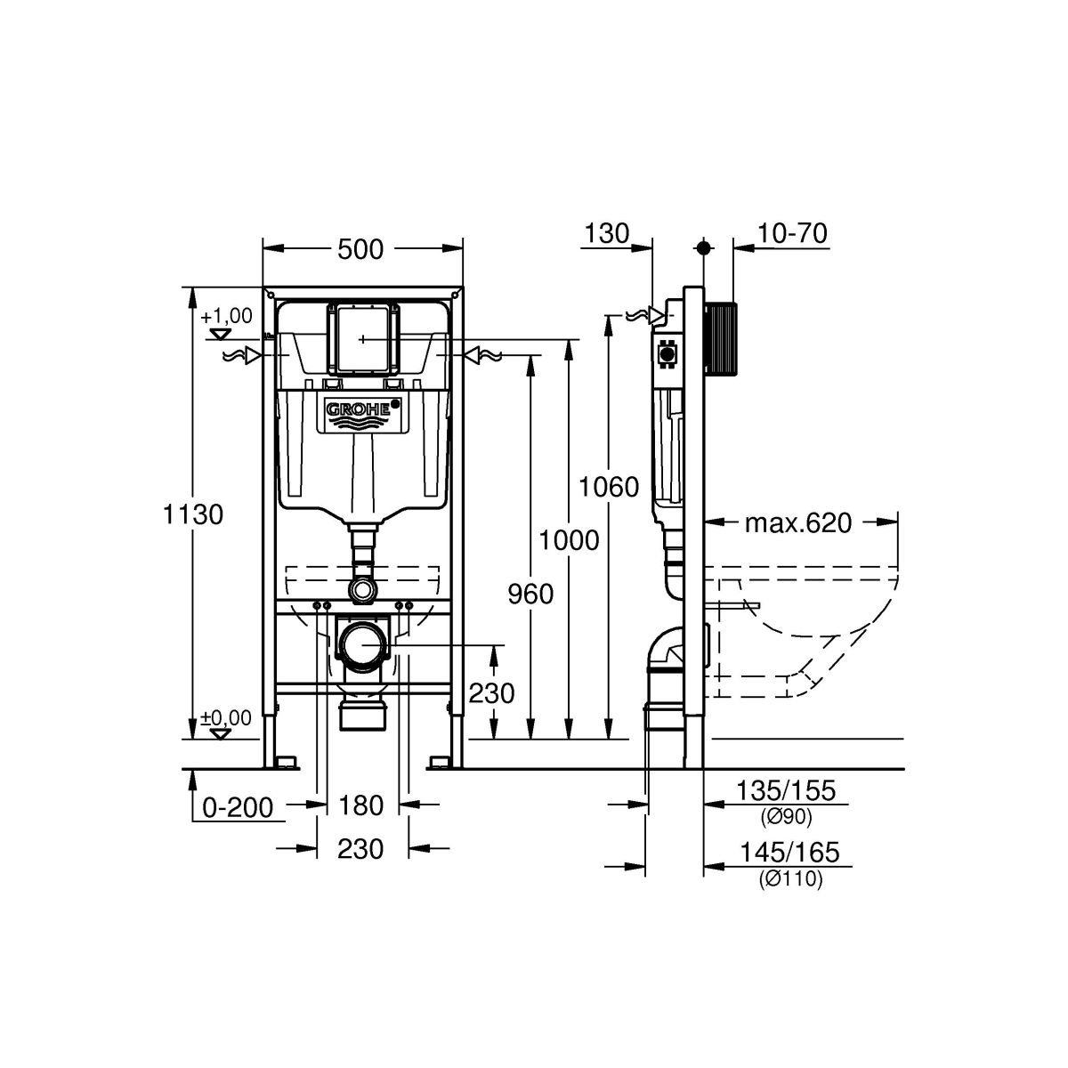 Grohe Rapid SL Unterputzrahmen in der hängenden Schüssel 38528001