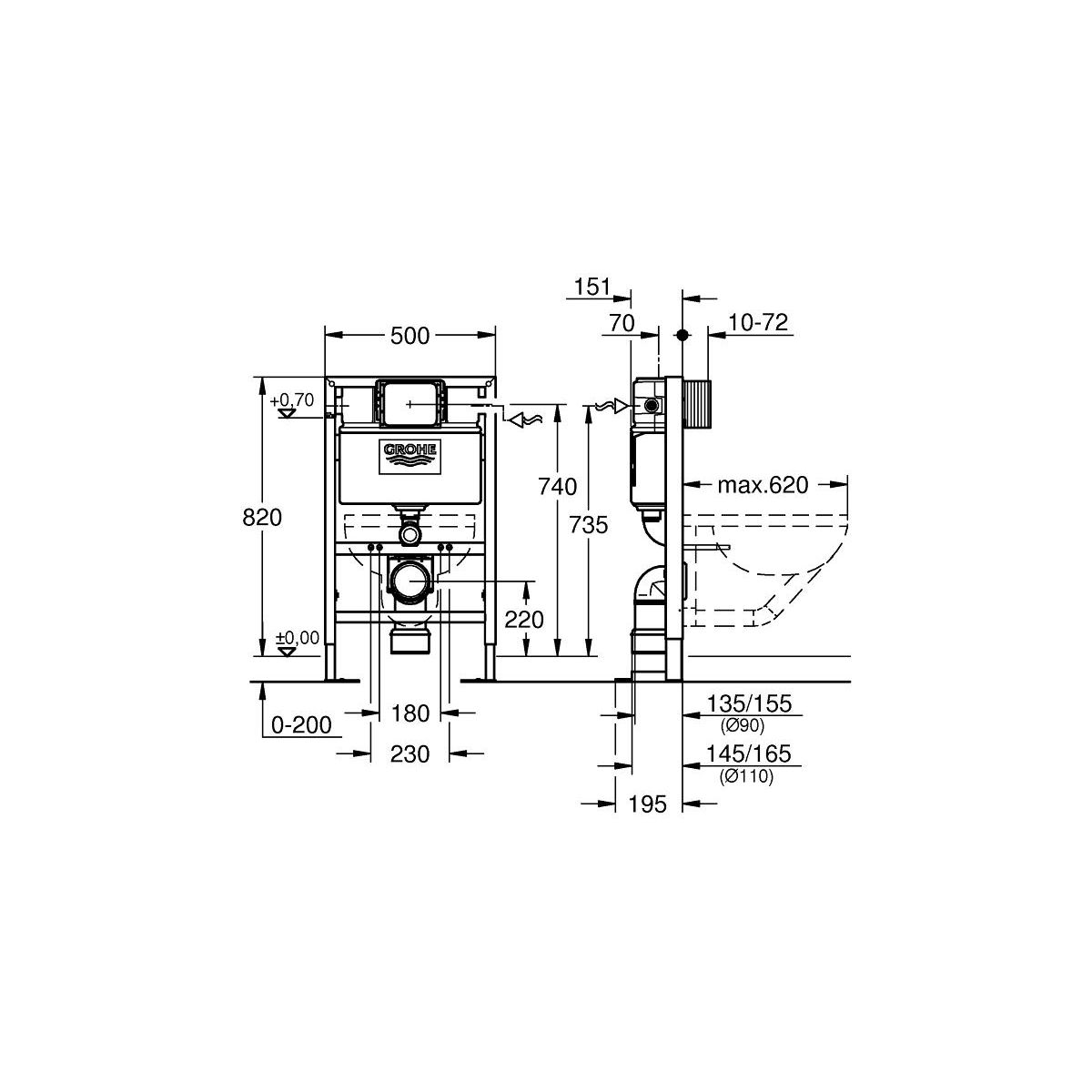 Grohe Rapid SL Unterputzrahmen in der hängenden Schüssel 38587000