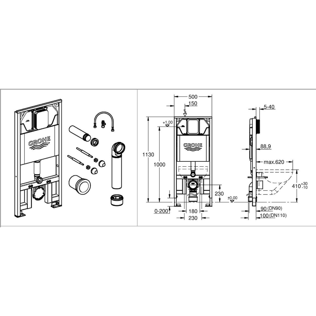 Grohe Rapid SL Unterputzrahmen in der hängenden Schüssel 39687000