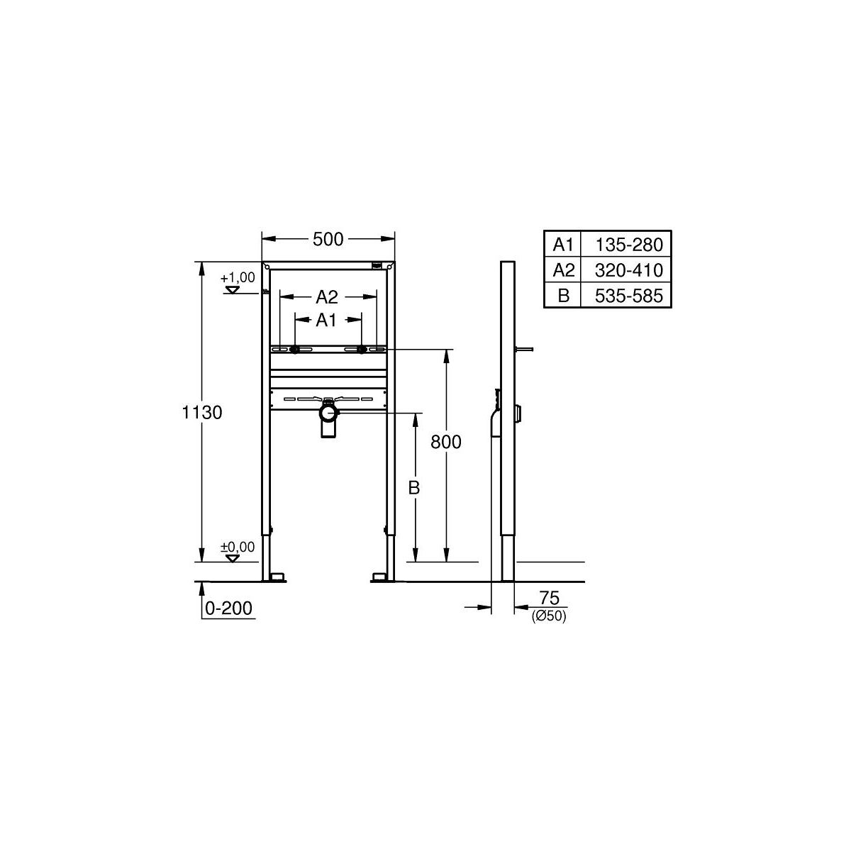 - Einbauhöhe 1,13 m