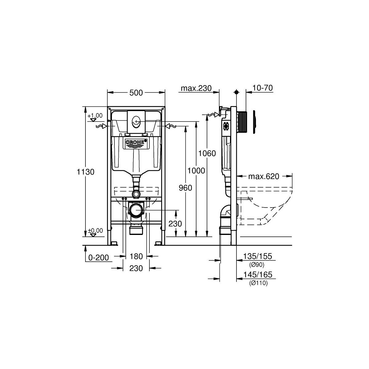 Grohe Rapid SL verdeckter rahmen mit betätigungsplatte in der hängenden Schüssel 38721001