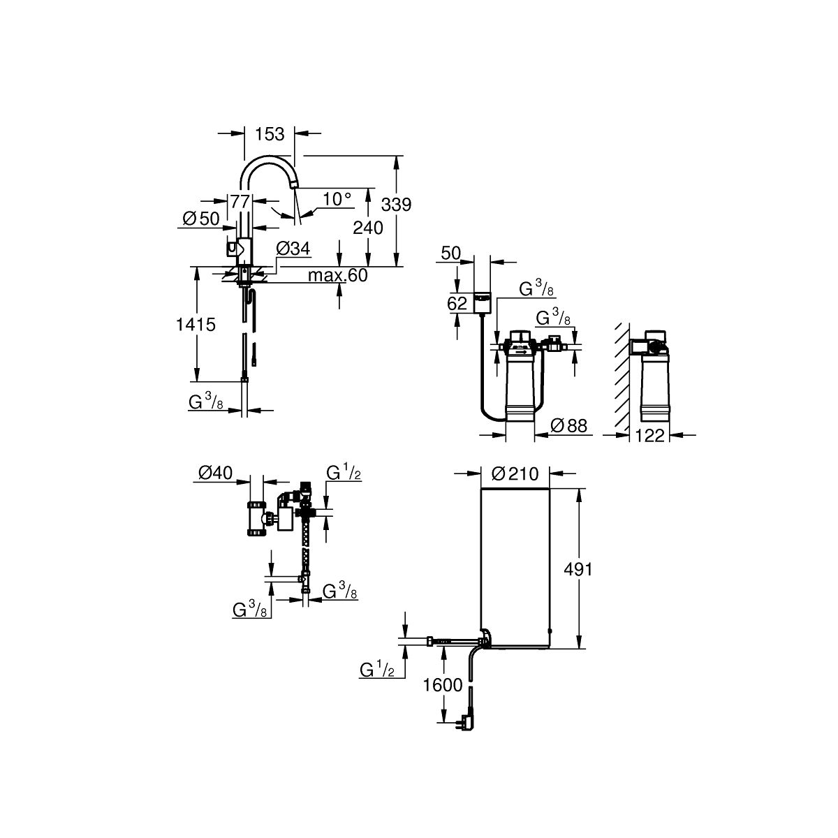 Grohe Red Küchenventil mit Boiler Stehend StarLight Chrome 30080001