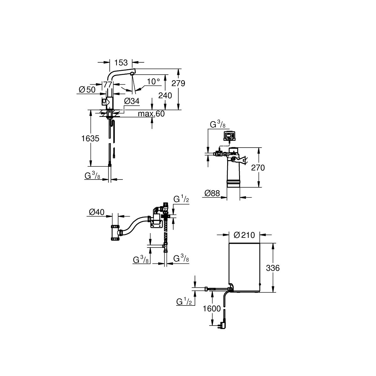 - Grohe Red -Filter im Lieferumfang enthalten, um den Boiler vor Kalkablagerungen zu schützen