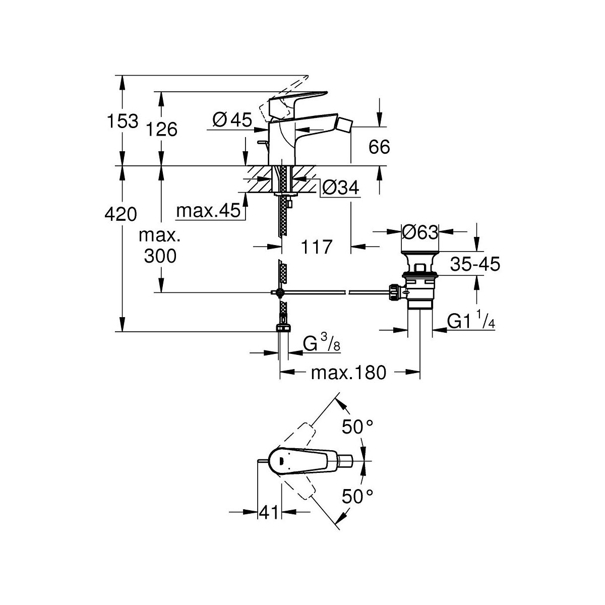 Grohe Start Edge Bidet-Wasserhahn stehend StarLight Chrome 23345001