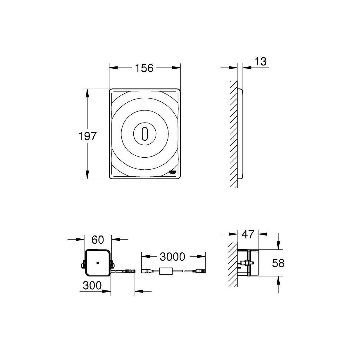 - Betätigungstaste 156 x 197 mm