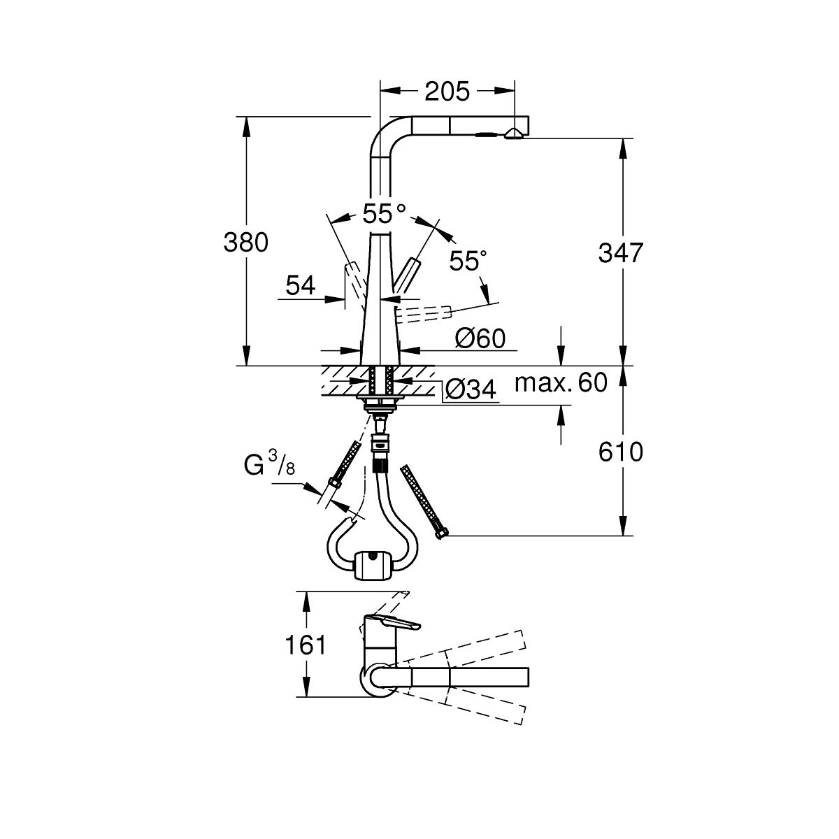 - Grohe Magnetic Docking für einfaches und präzises Andocken des ausziehbaren Auslaufs in die Ausgangsposition