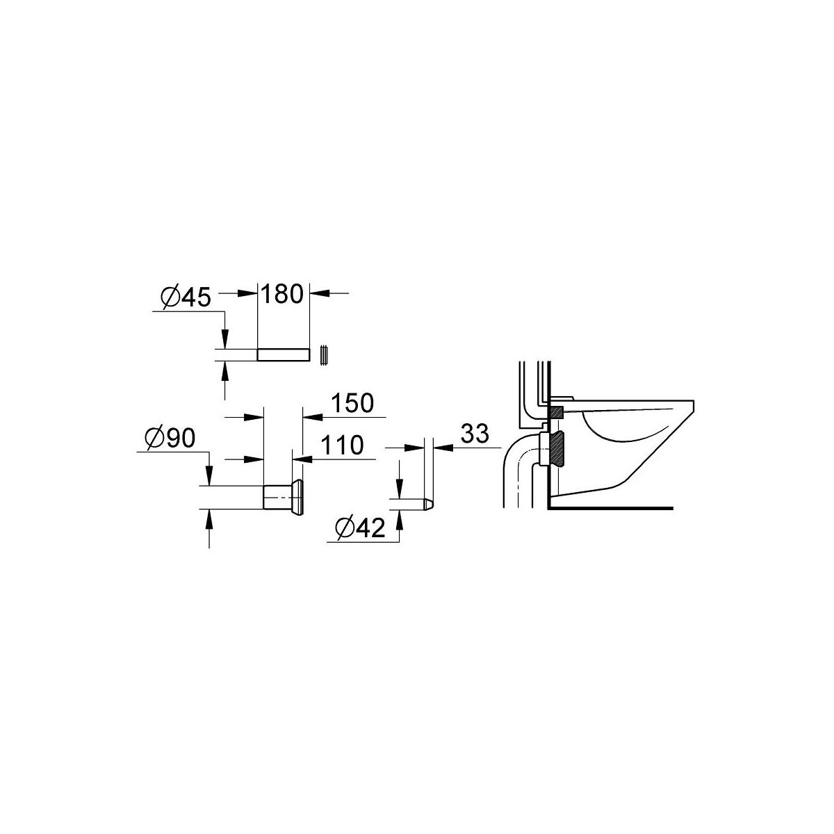 - Verbindungsrohr Ø 45 mm, Anschlussstück