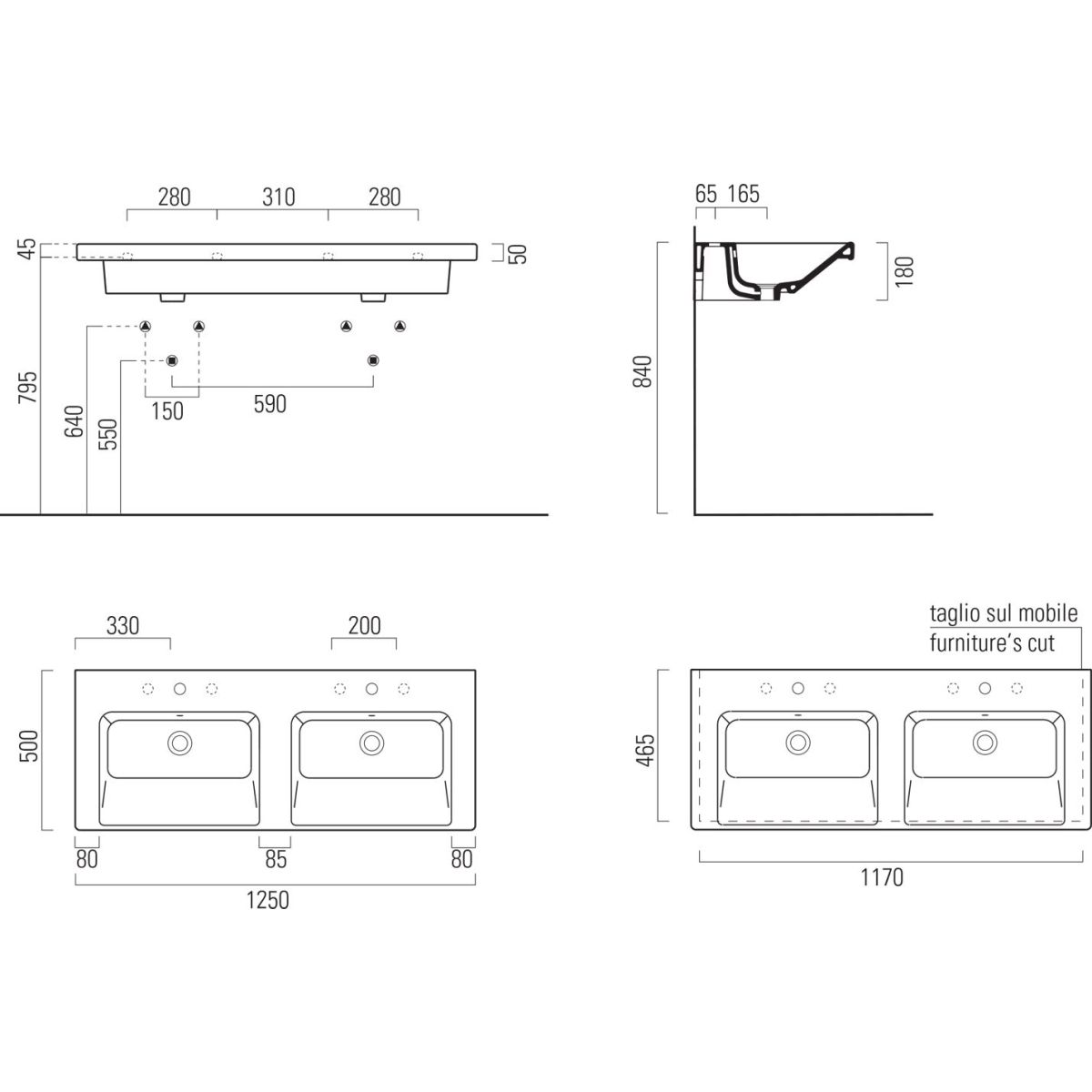GSI Norm Waschbecken 125x50 cm rechteckig Klassisch-Möbel-Doppelt weiß 8627111