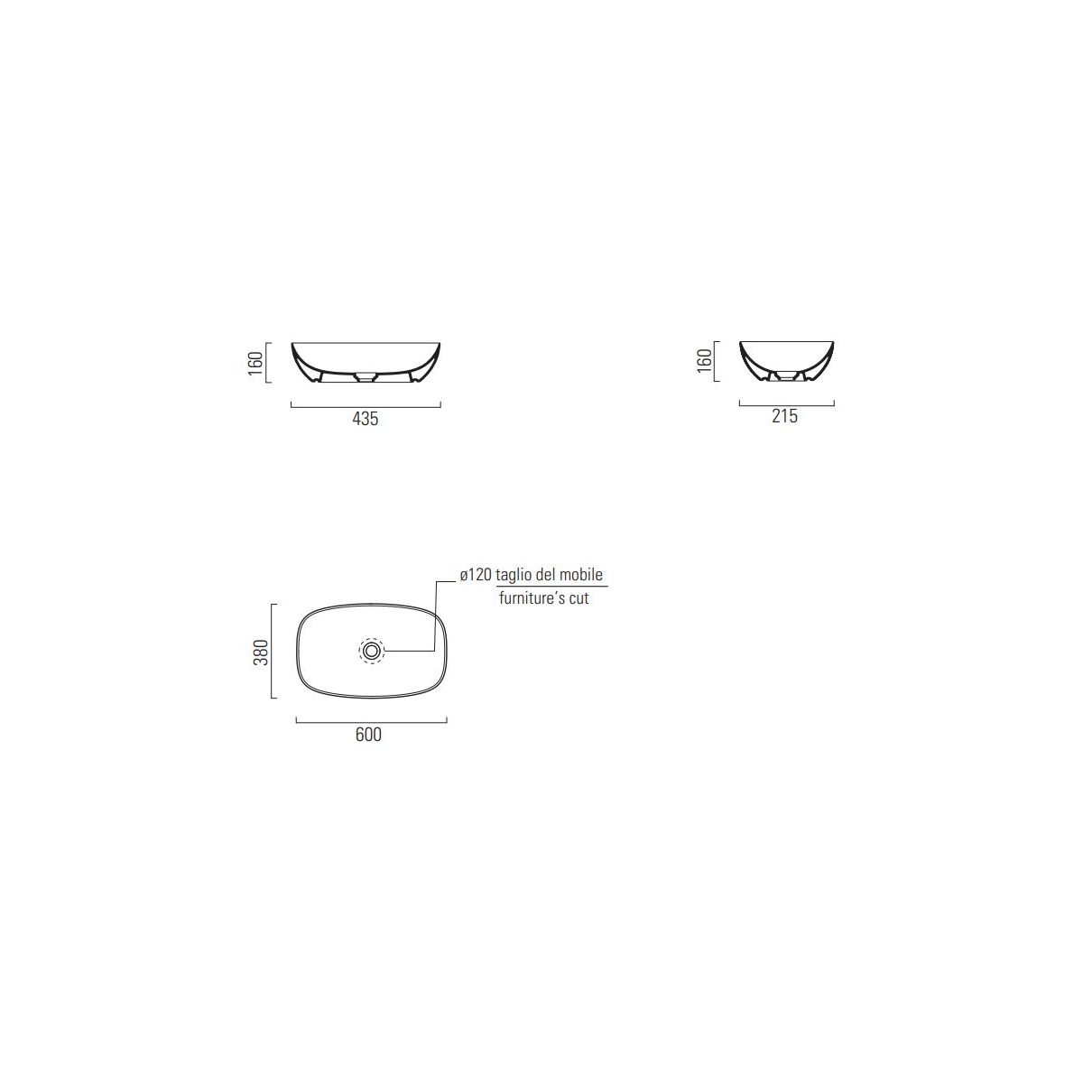 GSI Nubes Waschbecken 60x38 cm oval Aufsatzwaschbecken 978304