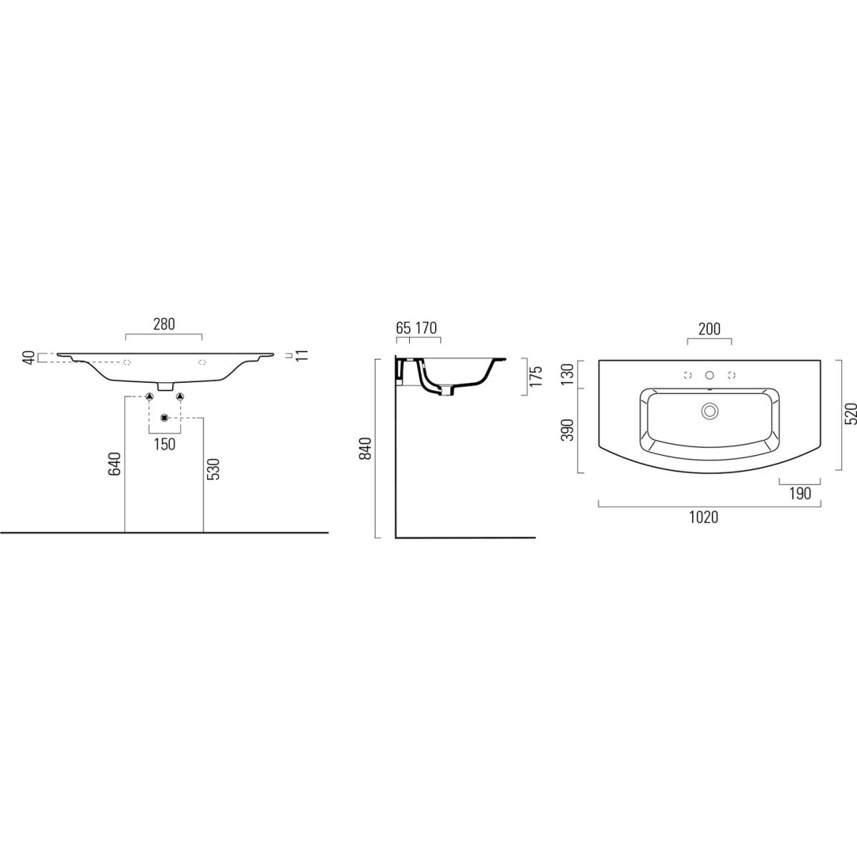 GSI Pura Waschbecken 102x52 cm halbrund Klassisch weiß 8825111
