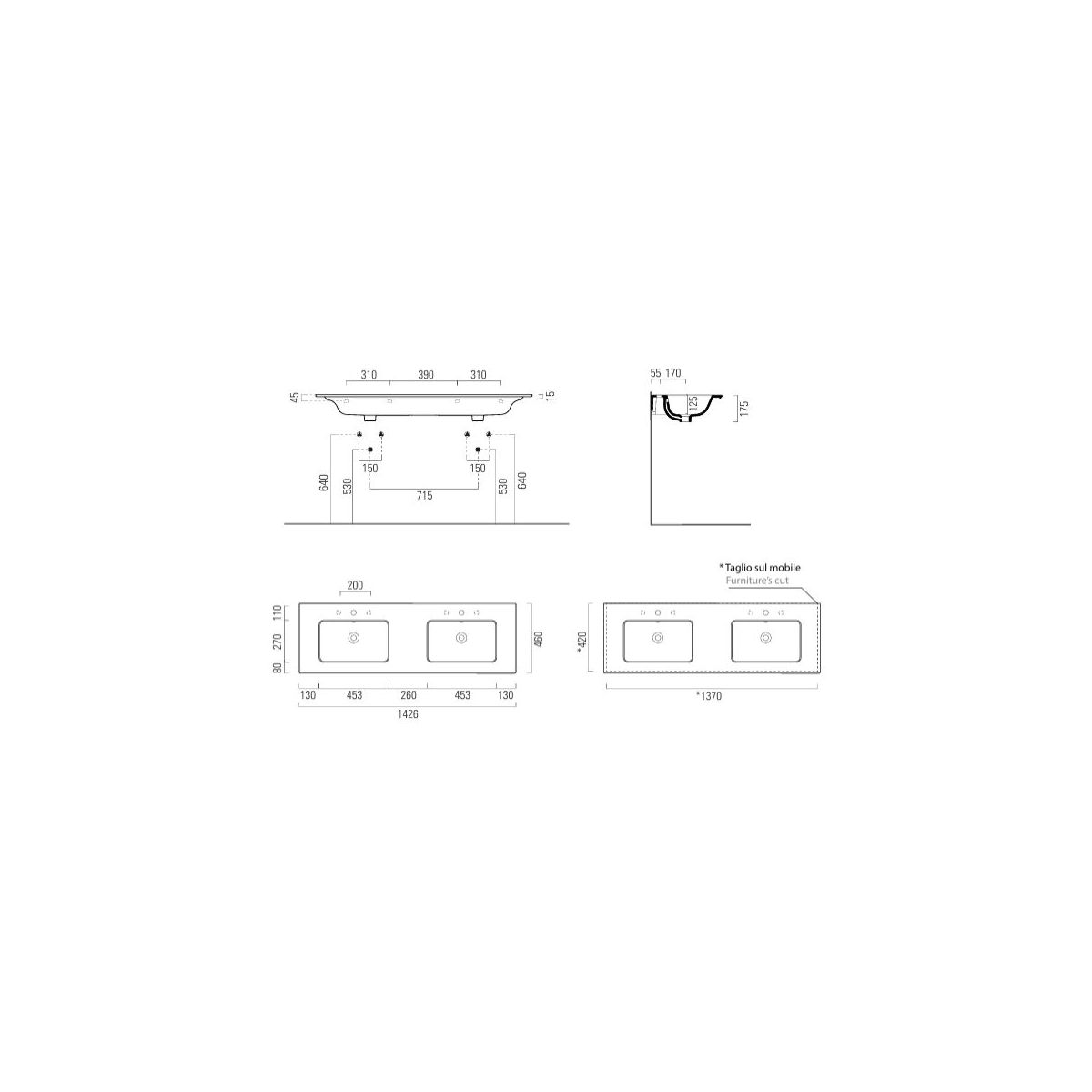 GSI Pura Waschbecken 142x46 cm rechteckig Einbauwaschbecken-Doppelt weiß 8889109