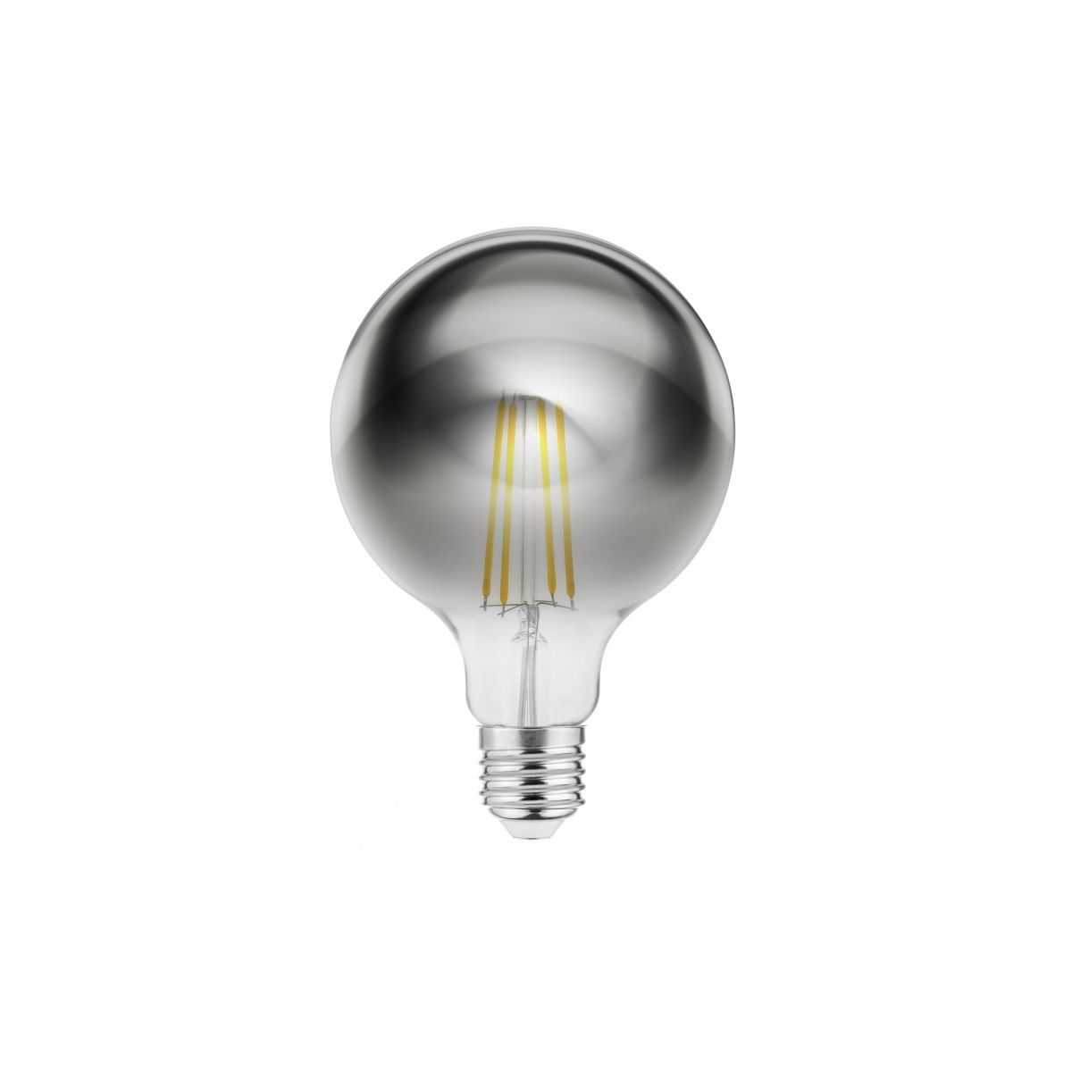 Die GTV- Glühbirne hat eine große, kugelförmige Form mit einer effektvollen silbernen Oberfläche, die ihr einen dekorativen Charakter verleiht. Sie eignet sich perfekt für offene Leuchten – wie Hänge-, Steh- oder Wandleuchten – und schafft einen eleganten Lichtpunkt in jedem Innenraum.