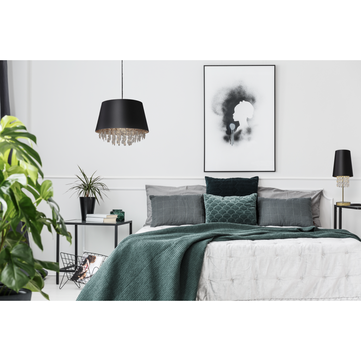 Die Lampe GTV Nesto ist eine Kombination aus Klasse, Eleganz und moderner Form. Das schwarz-goldene Finish und die subtilen, glänzenden Kristalle unter dem Lampenschirm verleihen ihr einen einzigartigen Charakter. Diese Beleuchtung ist ein Blickfang und verleiht dem Innenraum einen Hauch von Luxus.