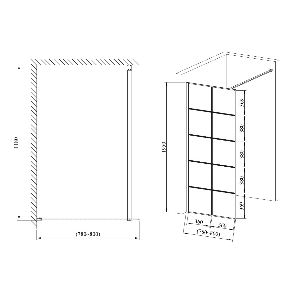 Hagser Agatha Begehbare Duschwand 80 cm schwarz Matte/durchsichtiges Glas HGR80000022