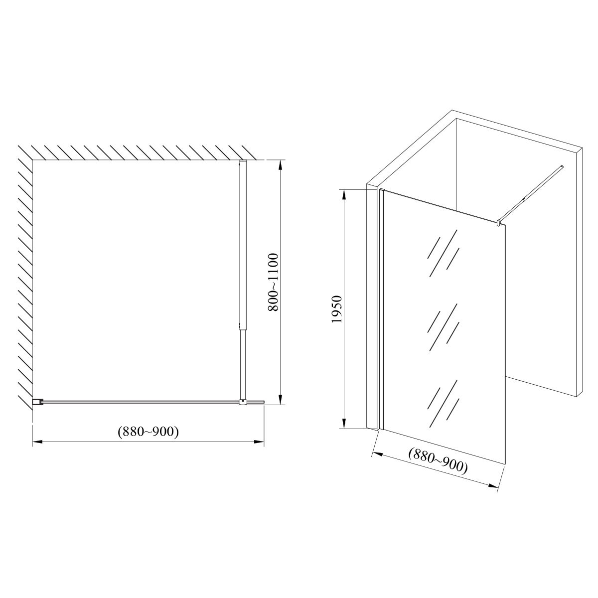 Hagser Bertina Begehbare Duschwand 90 cm schwarz Matte/durchsichtiges Glas HGR10000022
