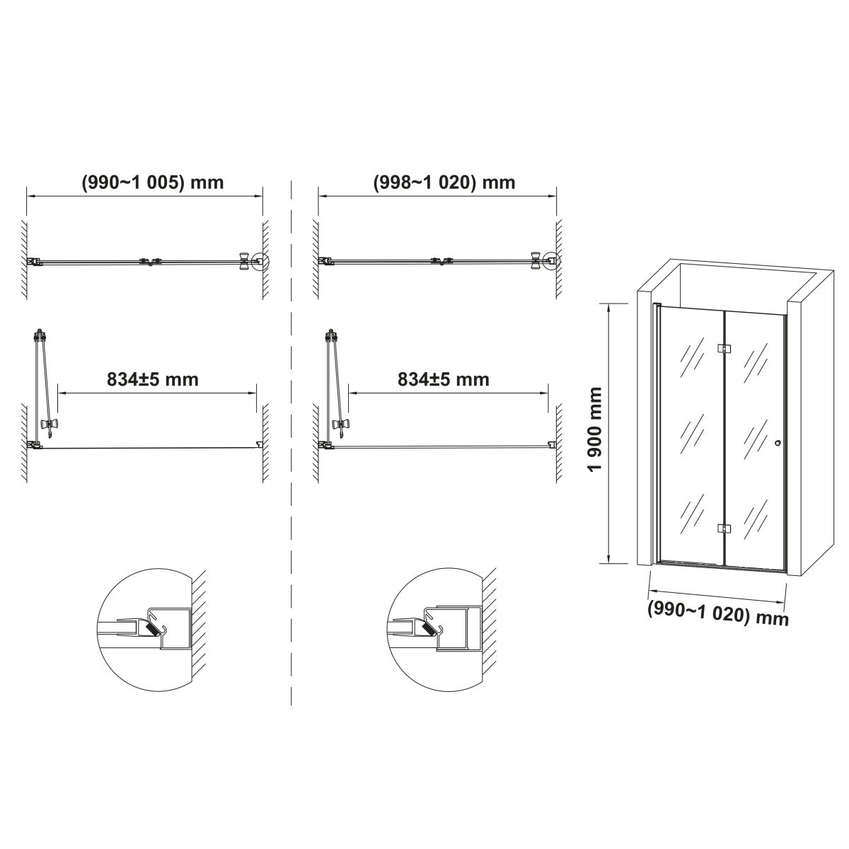 - Scharniere am Profil ermöglichen das Öffnen der Tür in beide Richtungen um 90°