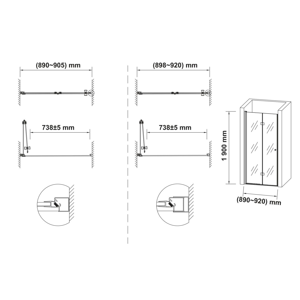 - Scharniere am Profil ermöglichen das Öffnen der Tür in beide Richtungen um 90°