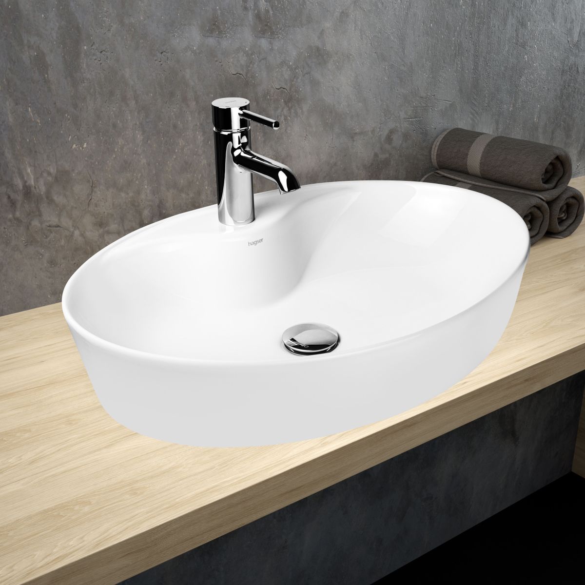 Hagser Elena Waschbecken 57x41 cm oval Aufsatzwaschbecken weiß HGR10000041