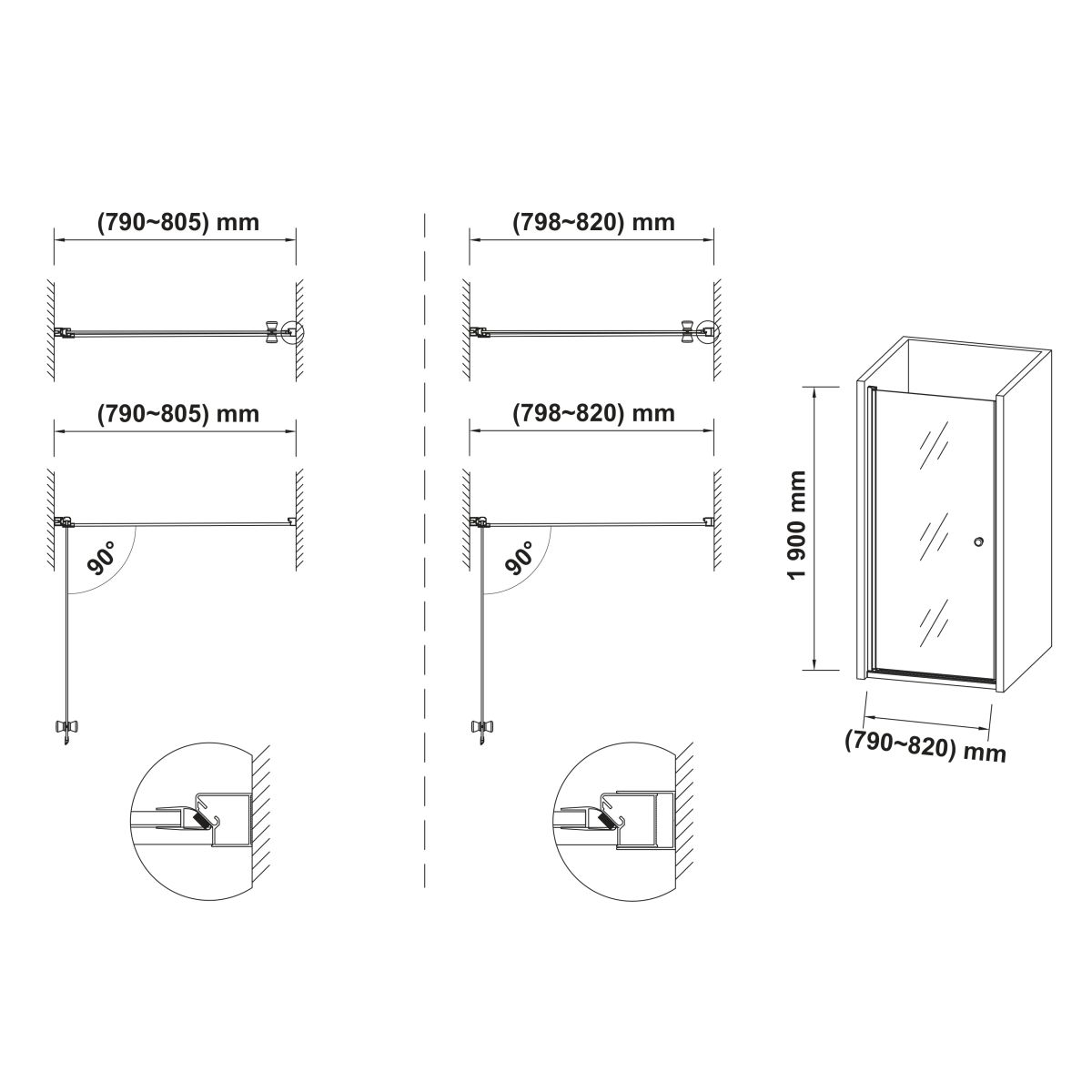 Hagser Gabi Duschtüren 80 cm aufklappbar schwarz Matte/durchsichtiges Glas HGR22000021