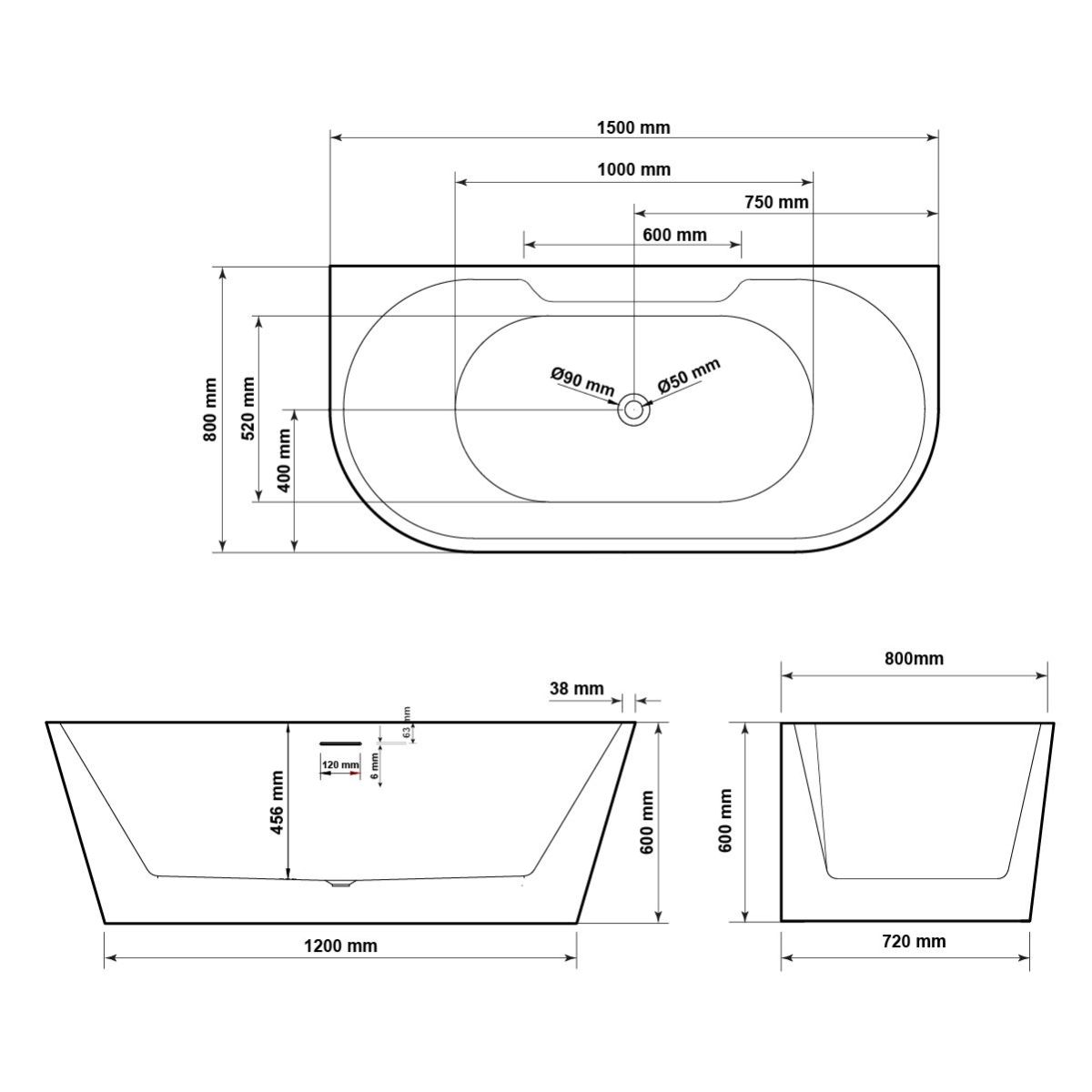 - Wandbadewanne aus Acryl