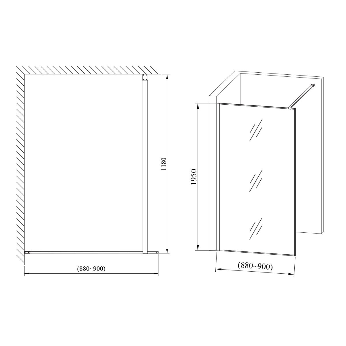 Hagser Hawisa Begehbare Duschwand 90 cm schwarz Matte/durchsichtiges Glas HGR50000022