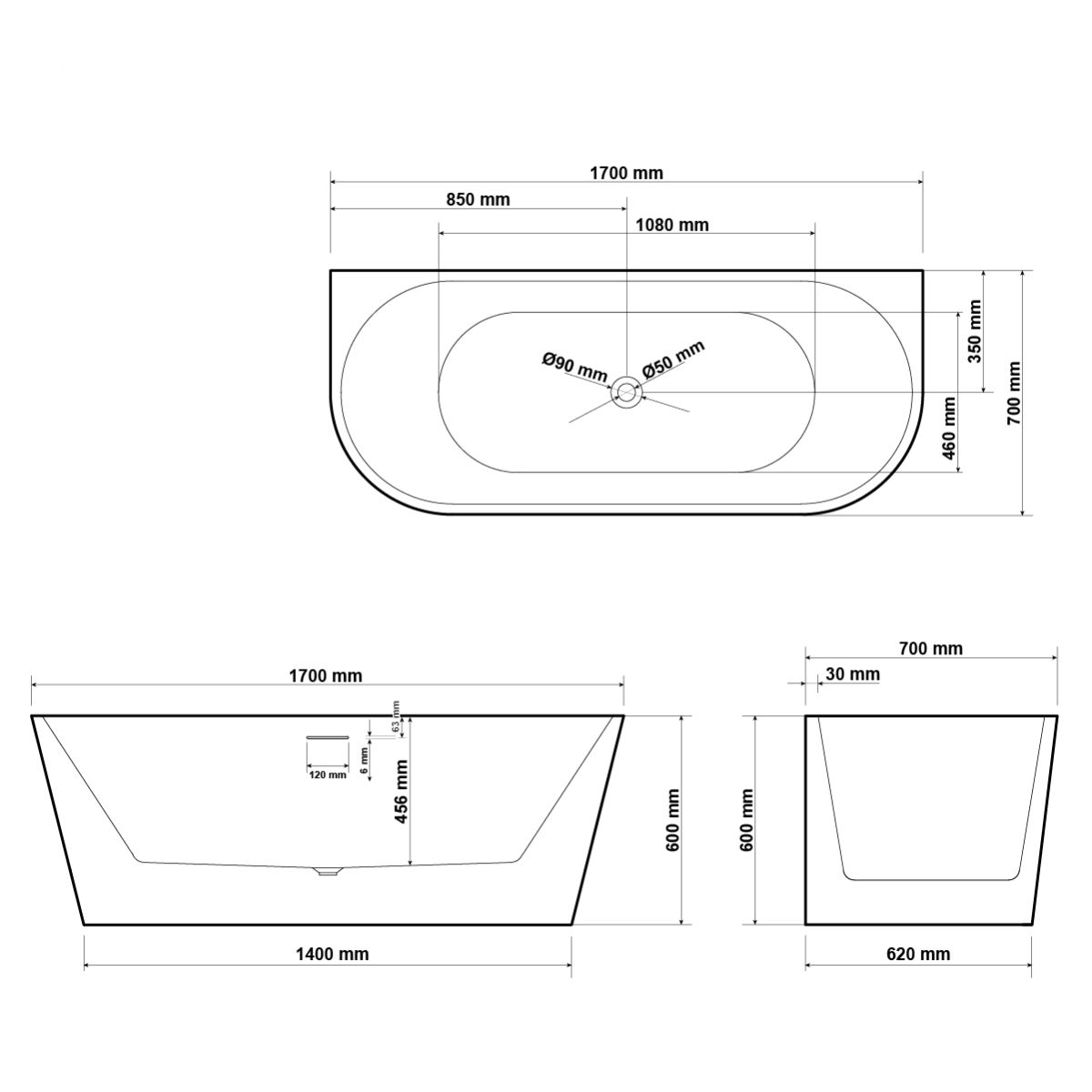 - Die freistehende Badewanne Hagser verfügt über ein integriertes Abfluss- und Überlaufsystem mit minimalistischem Schlitzüberlauf