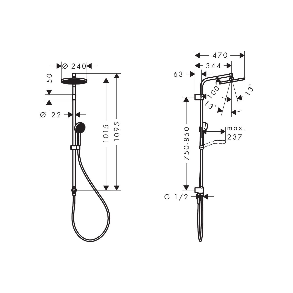 - Inbegriffen: Duschkopf, Duschkopf, Duschschlauch, Duschstange