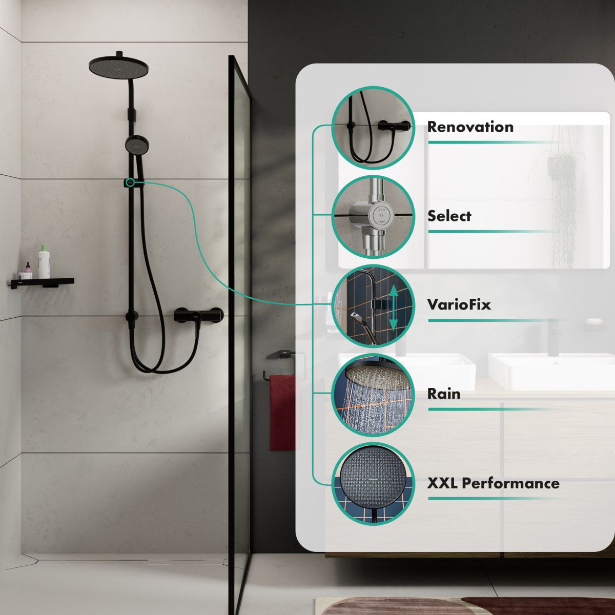 - XXL Performance: Der besonders große Duschkopf (240 mm) umhüllt den ganzen Körper mit angenehm warmem Wasser