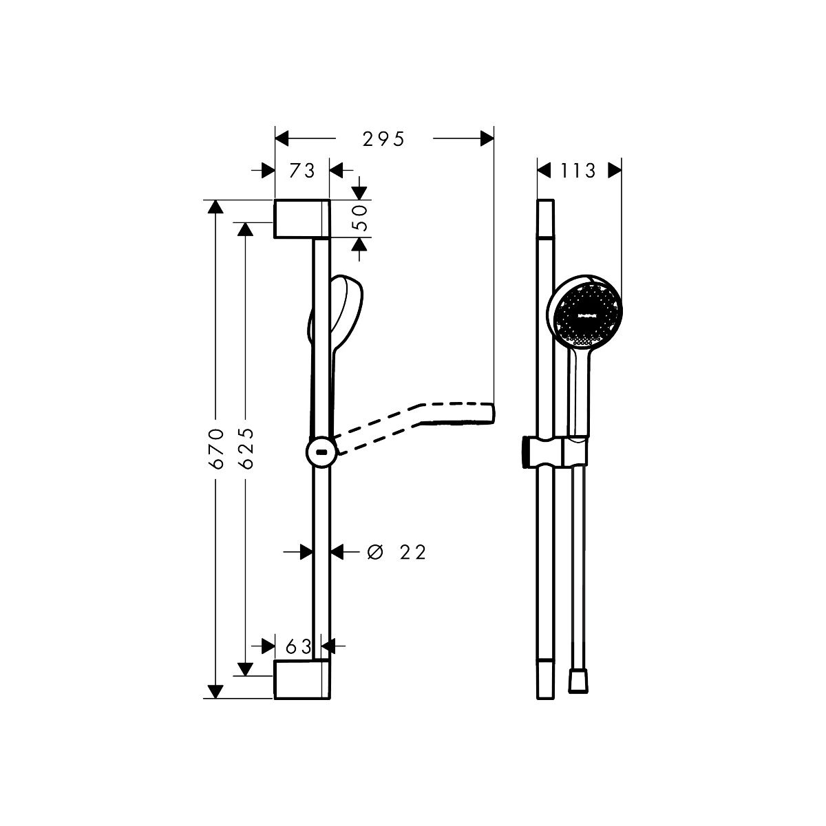- Die originale hansgrohe Unica-Duschstange (0,65 m) sorgt für außergewöhnlichen Komfort