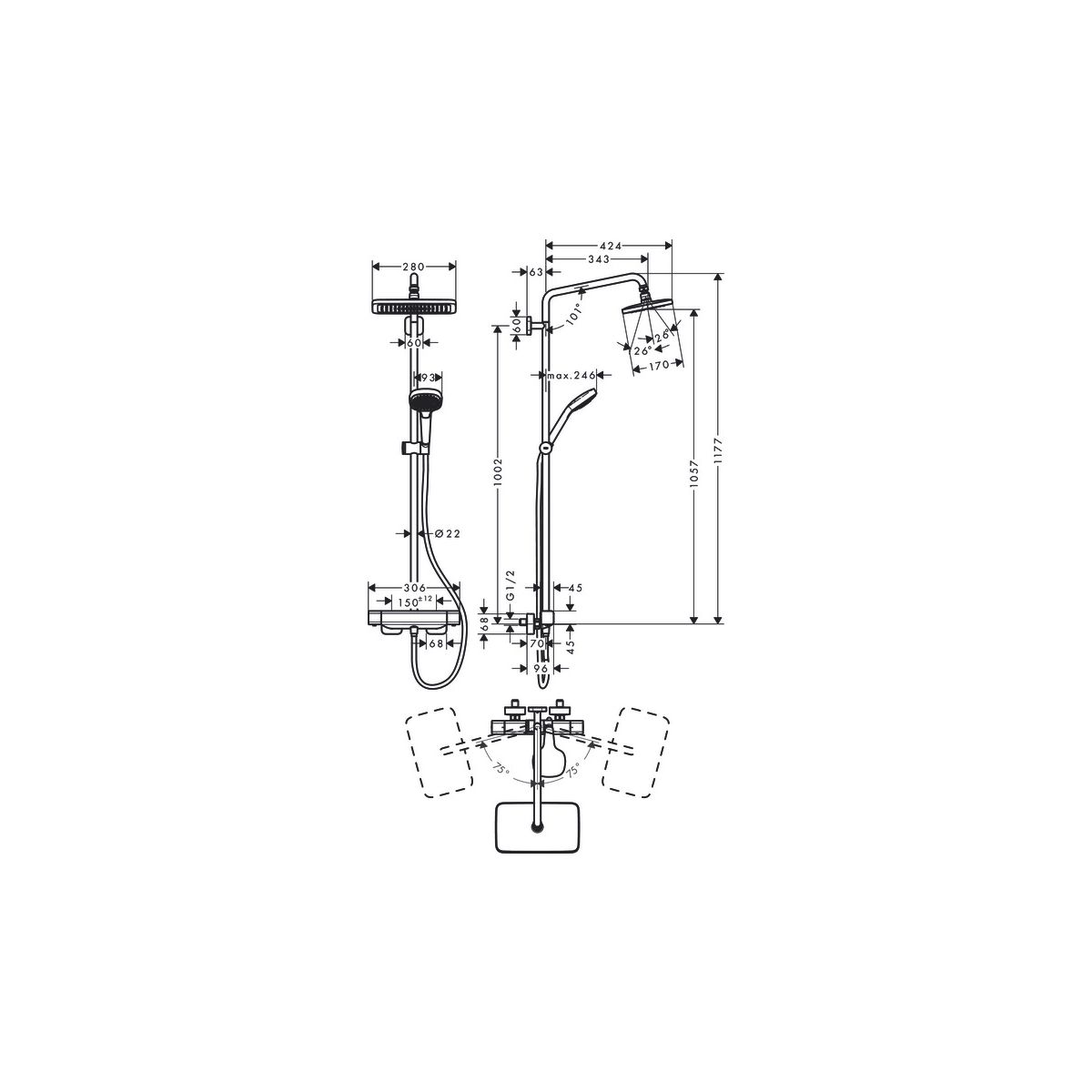 - Duschset Showerpipe Croma E 280 1jet mit Thermostatarmatur