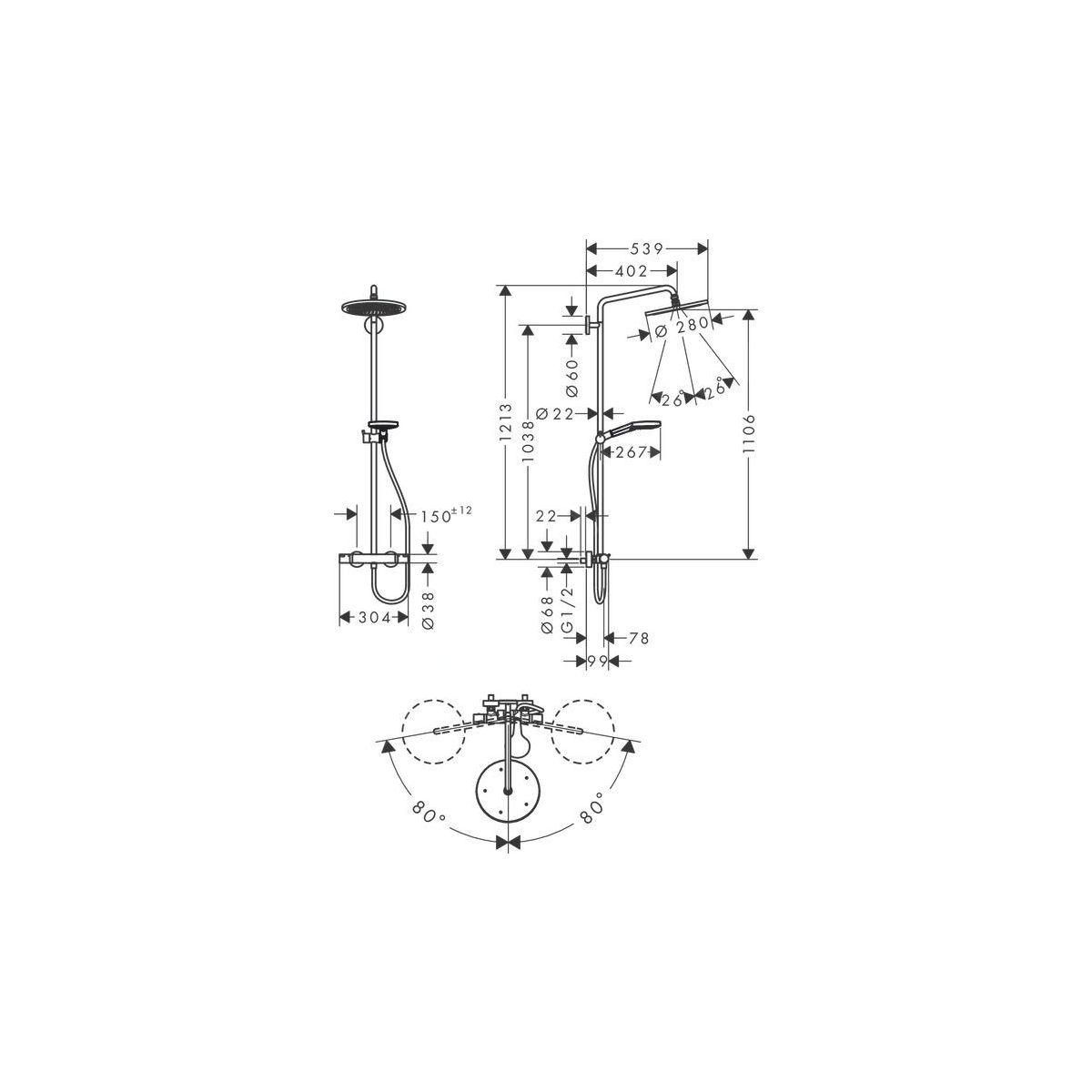 Hansgrohe Croma Select S Duschset Wandmontage mit Thermostat mit Regenbrause || 26890140