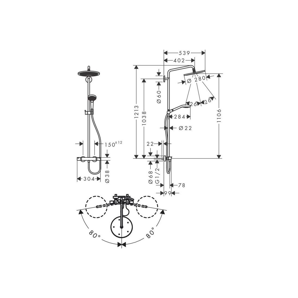 - Größe des Duschkopfs: 280 mm