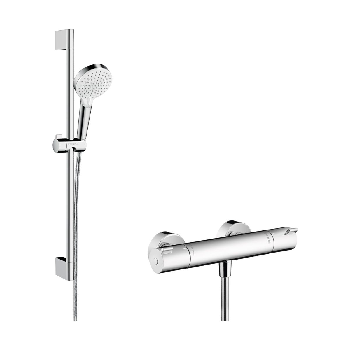 Hansgrohe Crometta Duschset Wandmontage mit Thermostat chrom-weiß 27812400