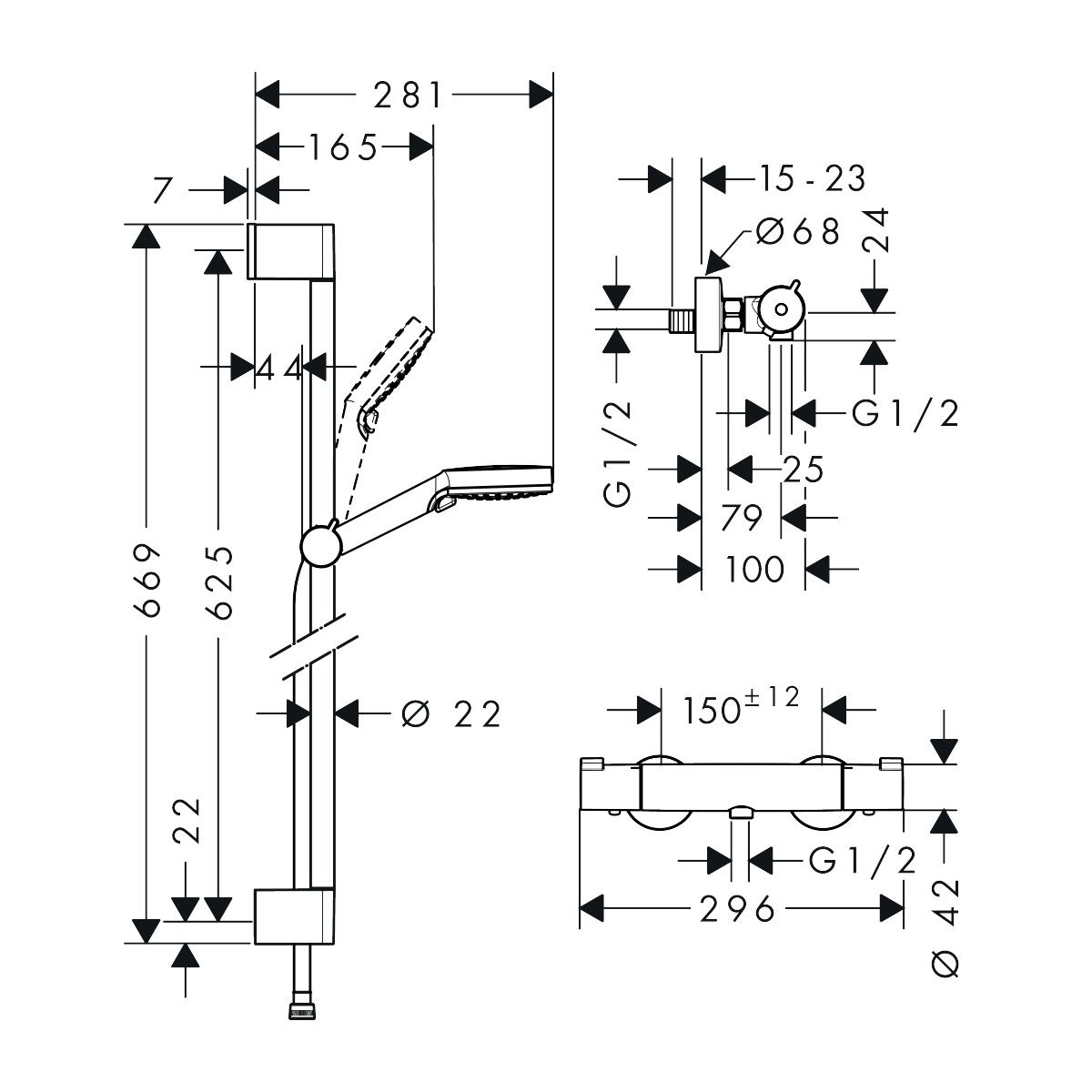 Dank der QuickClean-Technologie lassen sich Kalkablagerungen schnell von den Düsen entfernen, indem man sie einfach mit der Hand abwischt. Die große XXL Performance-Brause sorgt für einen gleichmäßigen Strahl, und der maximale Durchfluss von 14 l/min (bei 3 bar) garantiert höchsten Badekomfort. Das Hansgrohe Crometta Thermostat-Wandbrauseset in Weiß/Chrom 27812400enthält eine 65 cm lange Stange, einen Brauseschlauch und einen Aufputz-Thermostat – ein montagefertiges Komplettset.