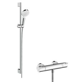 Hansgrohe Crometta Duschset Wandmontage mit Thermostat chrom-weiß 27813400