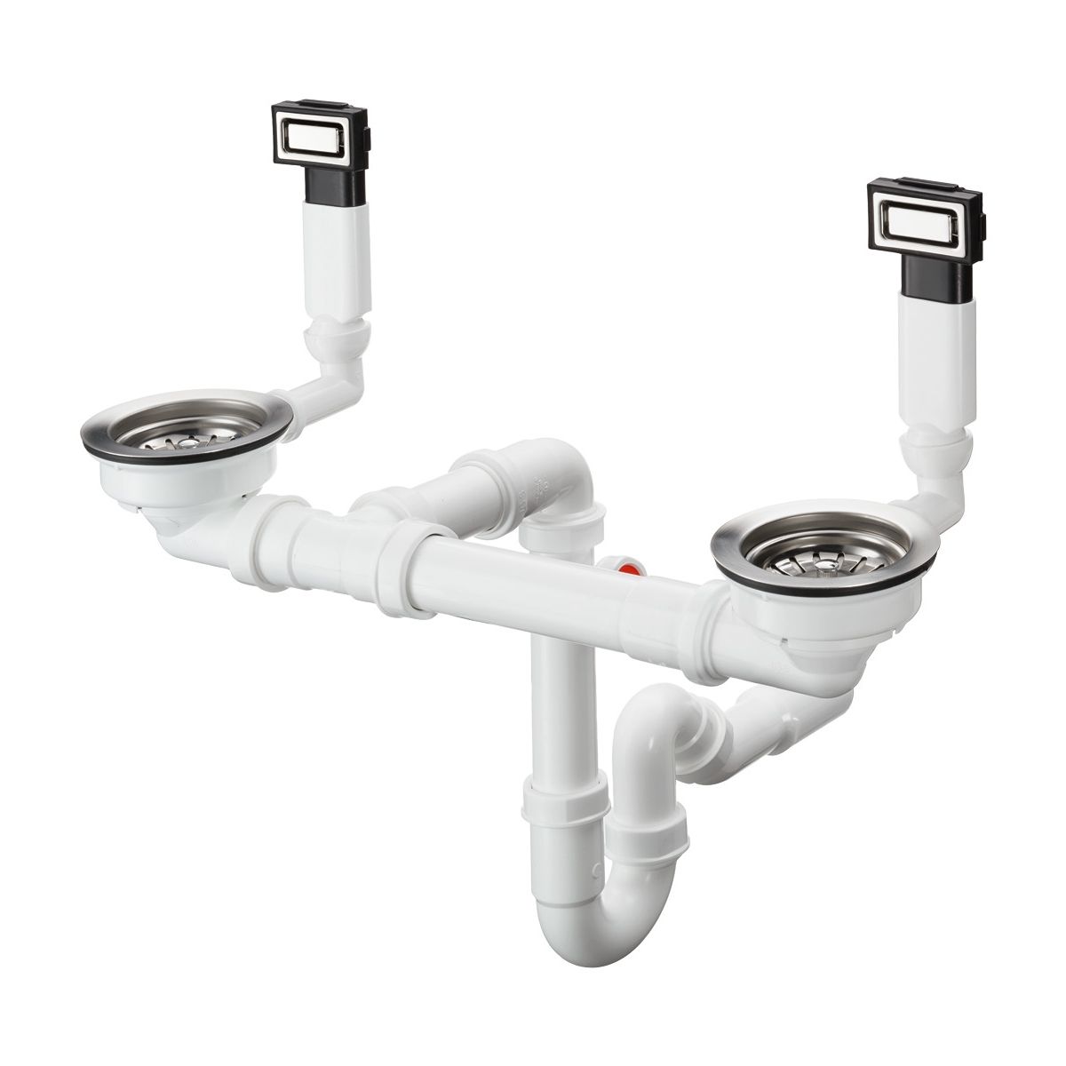 - Kompaktes Design: Das Ablaufsystem verfügt über ein platzsparendes Ablaufknie. Dadurch bleibt mehr Platz unter der Spüle.
